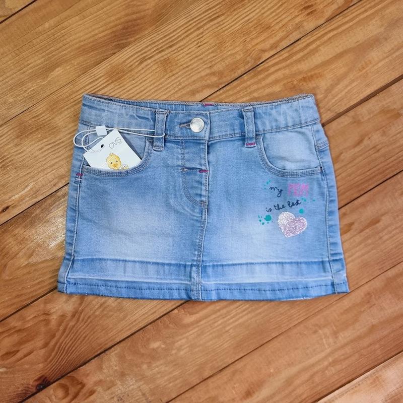 Красивая джинсовая юбка для девочки. Цвет: Голубой. Состав: 86% хлопок, 12% полиэстер, 2% эластан. Рост 86 (18-24 мес.) - Длина изделия 19,5 см, ПОТалии 22 см, посадка спереди до шва 18 см.