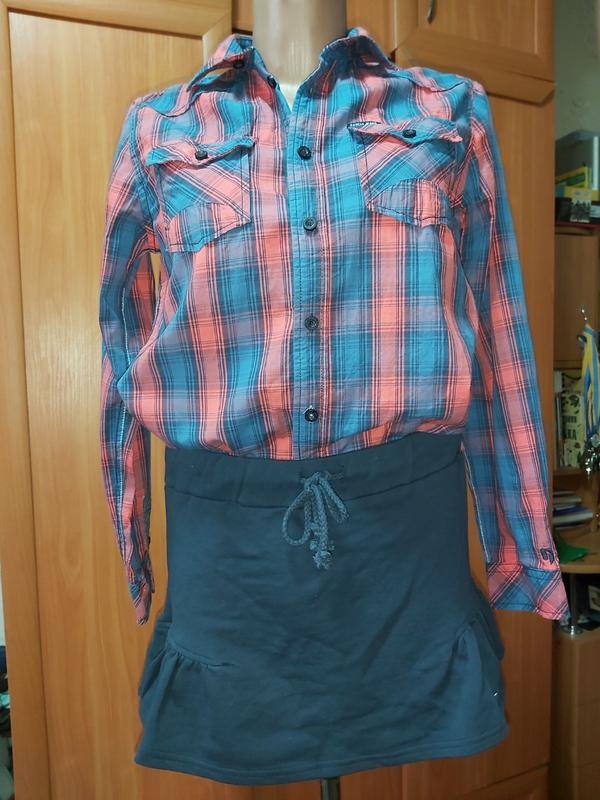 Спортивного стиля юбка состоянии нового цвет т.синий носится на бедрах длина 32 пояс 41(51)