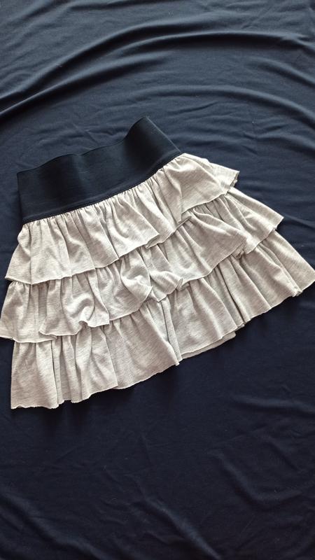 Спідниця на зріст 152-158 см сірого кольору, гумка темно-синя. Занижена талія. Ширина гумки 32.5 см, довжина 36 см Позаду біля шва гумка трішки розтягнута (див.фото)