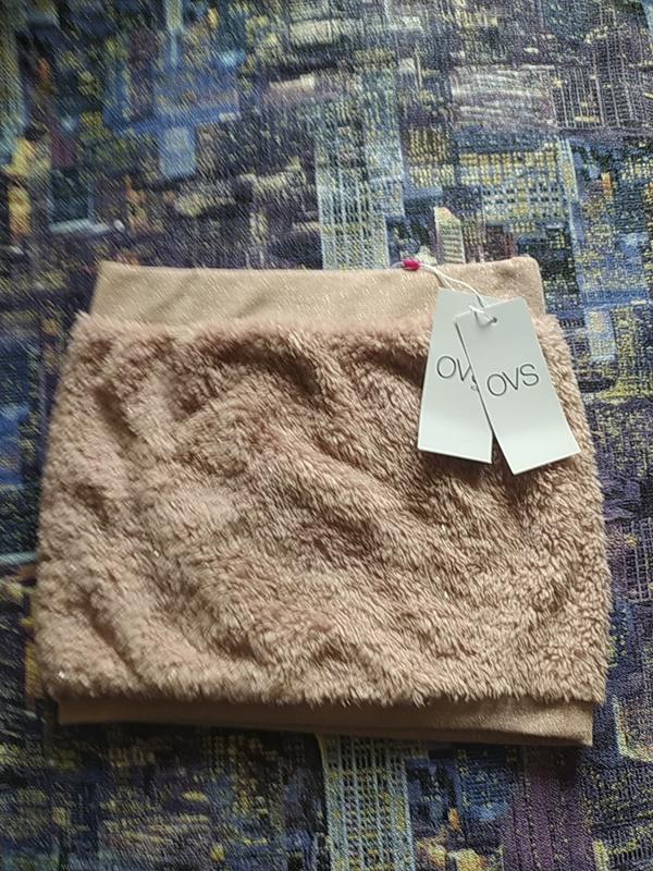 Тепла блискуча спідничка, талія на щільній резинці, тканина м'яка схожа на хутро. Вказаний розмір 8/9 зріст 134. Склад 100% поліестер. Заміри довжина 28.5, нот по резинці в спокійному стані 29.5.