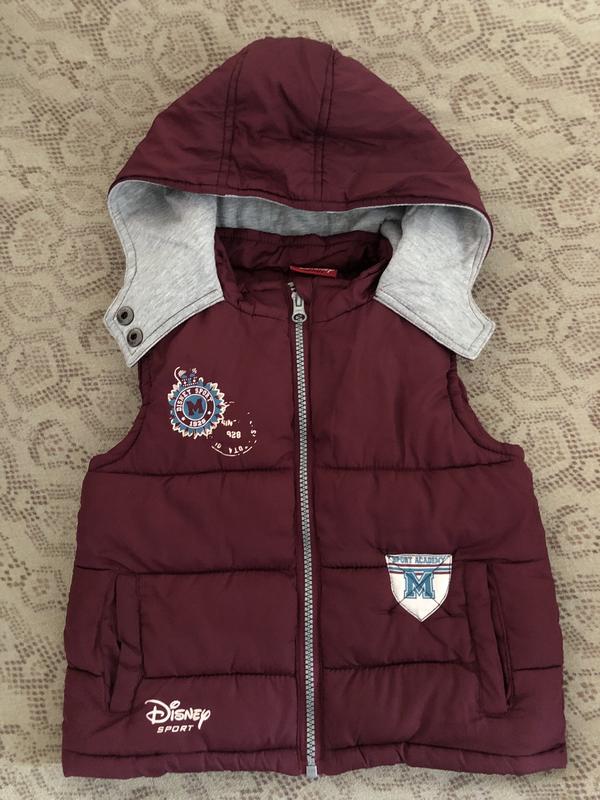 Жилетка подойдет и на мальчика и на девочку! Цвет бордо В хорошем состоянии,но есть пару мелких пятнышек,в носке не заметны,и немного стерт рисунок,на фото показала Размер указан 3-4 года Длина 38см,ширина 34см