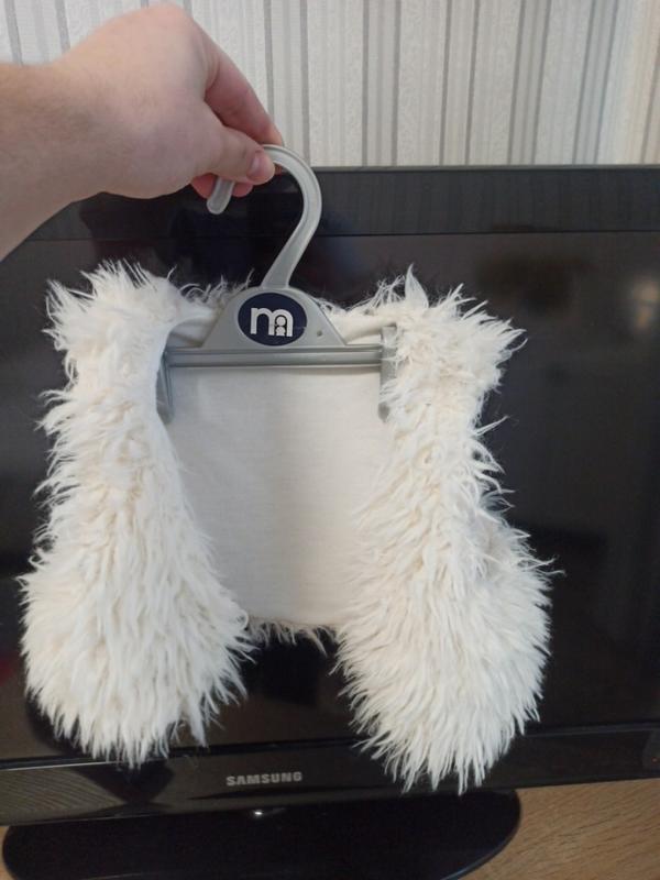 Жилетка барашка не жаркая, идёт как к лопаткам, тоненькая, спереди есть застежка, размер 5 лет но носили как и 3,так и 4. чистая белая.