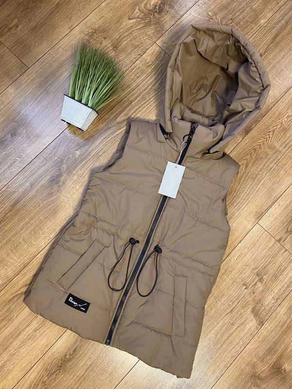 В НАЯВНОСТІ!!! 💜НОВИНОЧКА 💜 Жилетка тканина плащівка ЄММІ з м'яка,матова поверхня на підкладці наповнювач синтепон 150 капішон відстібається в поясі є утяжка ЧУДОВА ЯКІСТЬ! ПОВНОМІРНІ 140-(2 шт)-довжина 62,пог 42 146-(немає)-довжина 64,пог 43 152-(1 шт)-довжина 66,пог 45 158-(1 шт)-довжина 69,пог 48 +-1 см