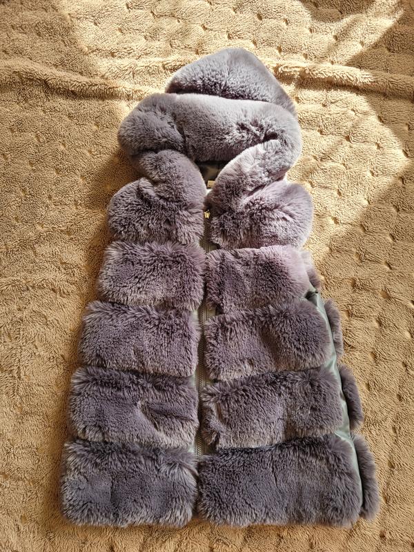 жилетка с меха на возраст от 7 лет до 10 лет. очень хорошее состояние. одевалась буквально 4 раза. Размеры: длина от плеча 66 см. ширина груди 32 см. ширина. ширина талия 47см.