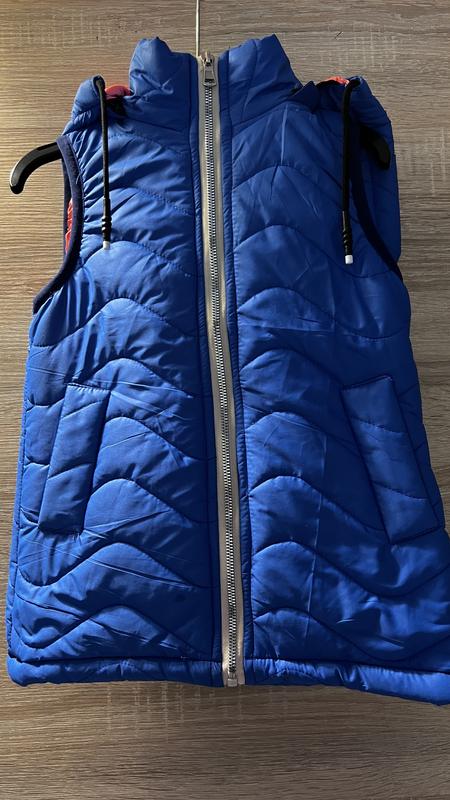 Жилетка на дівчинку в ідеальному стані, не вдягалася, але білки немає Довжина спинки 58 см. Капюшон відстібається.