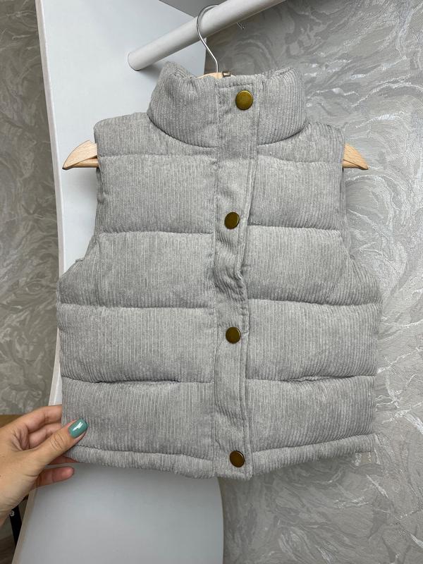 В наличии ✨✨✨ Нереально стильная и качественная жилетка 🤩 Очень теплая и качественная ✨ Без преувеличений! Очень рекомендую ✅ Цвет -серый Верх -вельвет.Утеплена синтапоном. Подкладка -нейлон С высокой горловиной Застежка на молнию + кнопки 110 - длина 37 см, ширина 36 см (3шт) 120 - длина 39 см, ширина 39 см (3шт) 130 - длина 41 см, ширина 40 см (4шт) 140 - длина 44 см, ширина 42 см(4шт) 150 - длина 46 см, ширина 45 см(3шт)