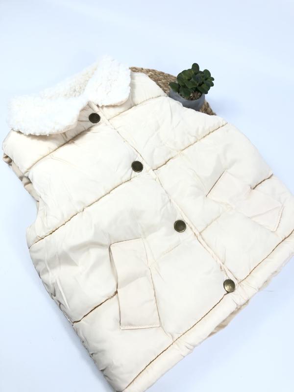 Жилет детский на синтепоне Застежка на кнопки Имеет два кармана В наличии размеры:110;120 Если нужно,онадам замеры.