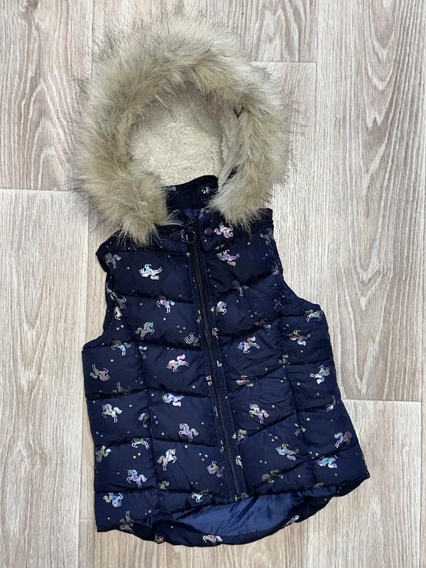 Жилетка с наполнителем Высокий ворот, съемный капюшон, карманы Состояние отличное 🏷️H&M 6-8 лет/122-128 Длина 44/49. ПОГ 37 💰380 грн💰