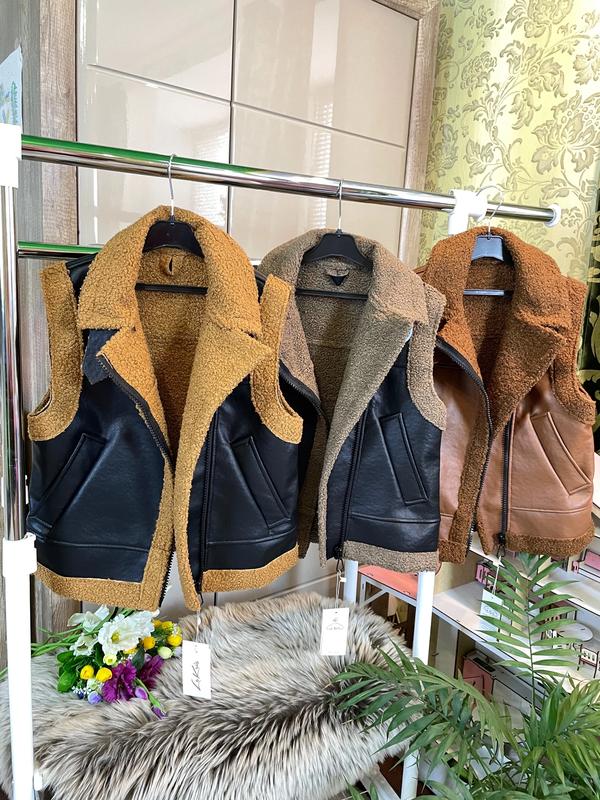 Любите клиенты! ‼️Наложка является только новой по почте по предоплате 200 грн. Укр почта по полной оплате. Безопасной оплаты нет! Перед заказом, уточните наличие! Благодарю ❤️ В наличии 💙💛 🌷НОВИНКА🌷 Стильна жилетка для красунь 💗 Ткань экокожа + экомех, мягкая, приятная на ощупь, без запаха! закрывается на молнию, есть карманы Замеры: длина/ширина под руками 140 - 52/44 146 - 54/46 152 - 57/48 158 - 59/50