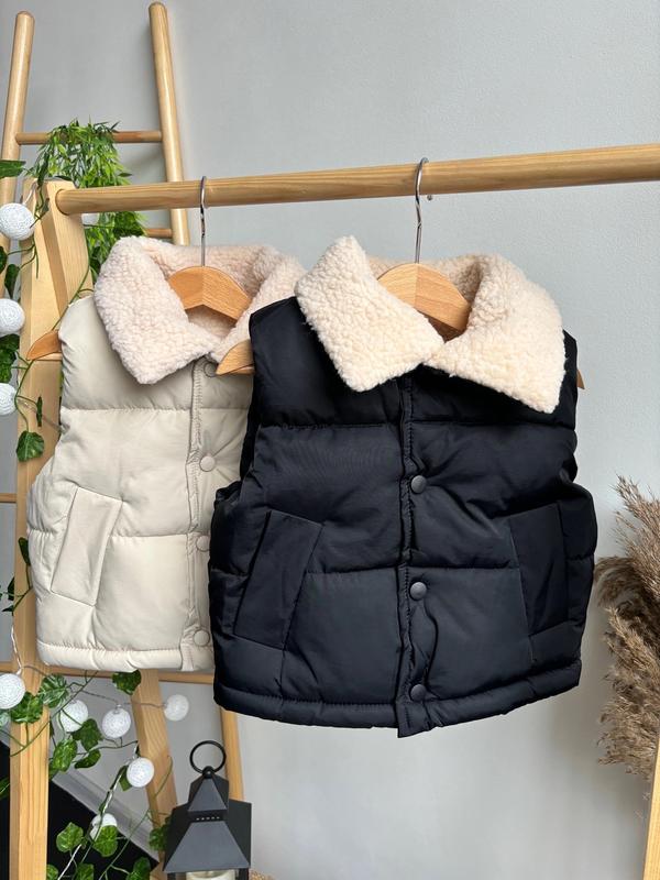 🌿🌿🌿У НАЯВНОСТІ🌿🌿🌿 Гарний, теплий жилет Матеріал плащівка, наповнювач синтепон, всередині утеплена штучним хутром Застібка: кнопки Є 2 кишеньки М'якенька, зручна та гарної якості 🌿🌿🌿ЗАМІРИ🌿🌿🌿 90 - довжина 35 ширина 39 100 - довжина 37 ширина 41 110 - довжина 41 ширина 43 120 - довжина 44 ширина 44 130 - довжина 46 ширина 47