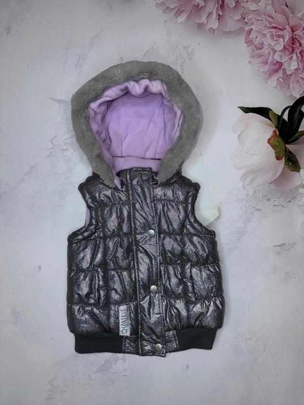 яркая, блестящая,с переливом жилетка на флисе. бирки нет George длина 32. ПОГ 29+