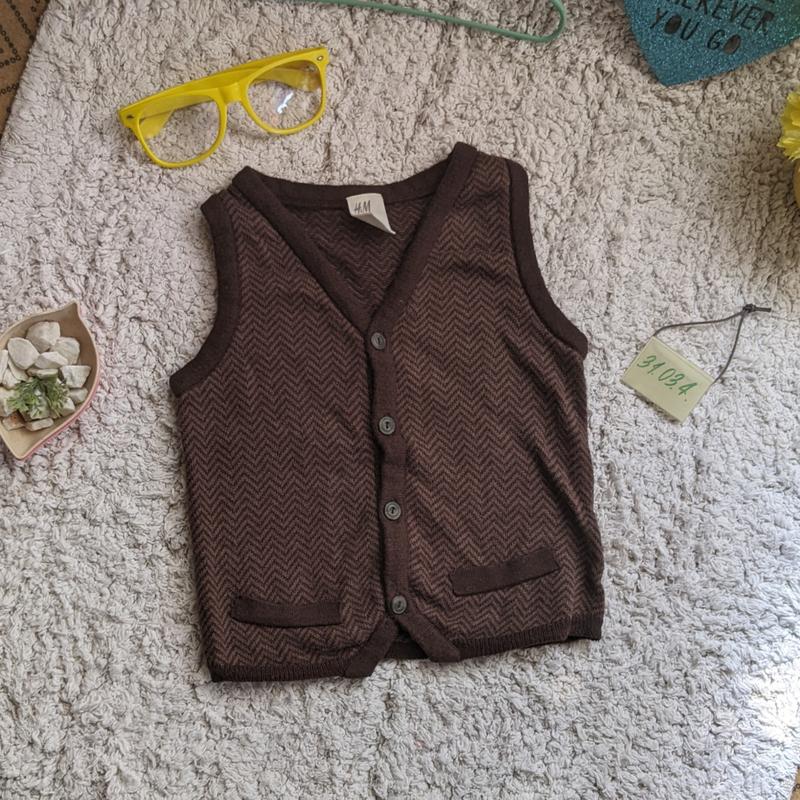 Тепленький коричневый жилет hm 12-18 явно крупноконечный, подмышки 29 39 в составе 10% шерсти