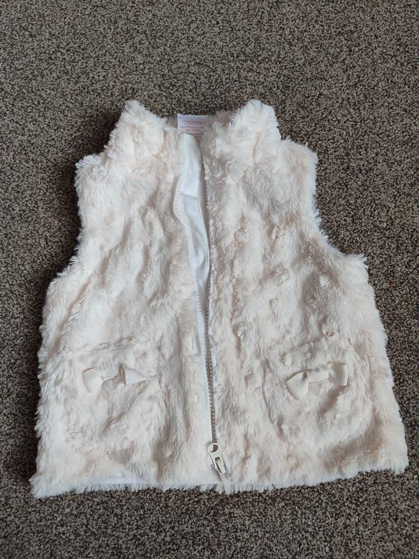 ідеально підійде на вік 2,6 роки. стан ідеальний, дуже красиво виглядає, можна одягати під будь-який одяг. молочного кольору.