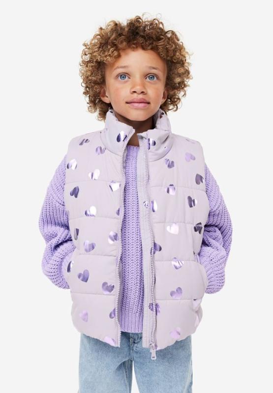 Жилет из стеганой ткани. Воротник стойка, застежка-молния с защитой для подбородка. Спереди косые прорезные карманы, эластичный край шеи и подола. Подкладка тафта. Размер в наличии 122-128.