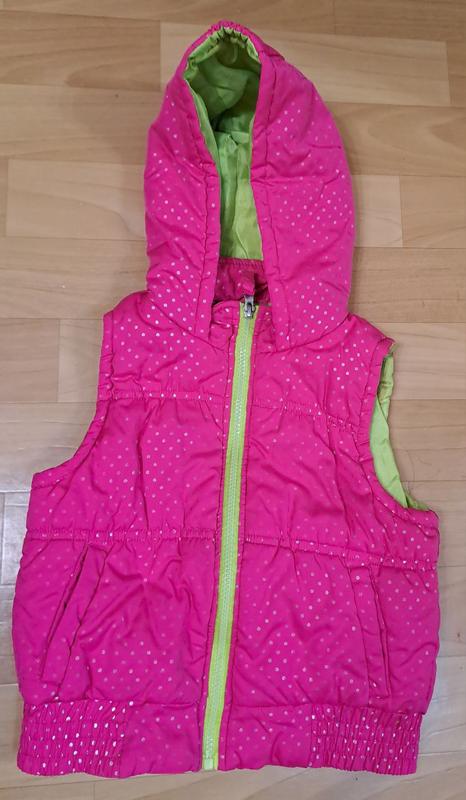 Жилетка - незамінна річ на прохолодні весняні або осінні дні або вечори. Жилетка на дівчинку 5-6 років (зріст 110, повномірна) в гарному стані. Яскрава, легка. Довжина виробу 39 см, півобхват грудей - 36 см,ширина по плечам 27 см.