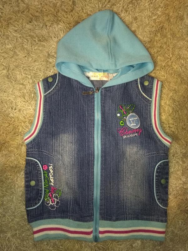 Симпатичная жилетка подойдёт на рост 128-134 см. Из нюансов : катыши на трикотажной основе и кое-где облупились вставки из кожзама.
