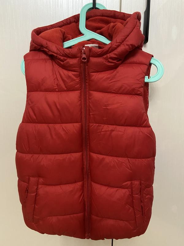 Продам жилетку « универсальную» подойдет как для мальчика так и для девочки. Цвет красный. В середине подкладка на флисе, очень тёплая. Замочек работает. Есть два кармана. Состояние новой. Размер 116
