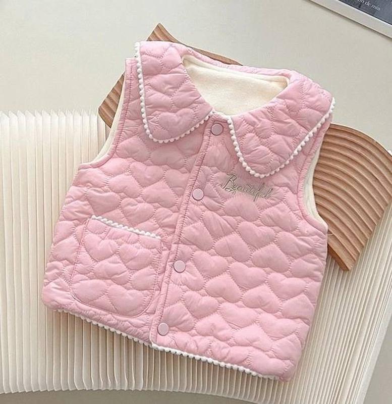 ЦИНА 640 грн Жилетка верх полиэстер подклад плюш утеплитель - тонкий слой синтепона закрывается на кнопки стильный воротничок есть кармашек Замеры: р.90 - длина 36 см, ширина 35 см р.100 - длина 39 см, ширина 36 см р.110 - длина 41 см, ширина 38 см р.120 - длина 44 см, ширина 40 см р.130 - длина 48 см, ширина 42 см