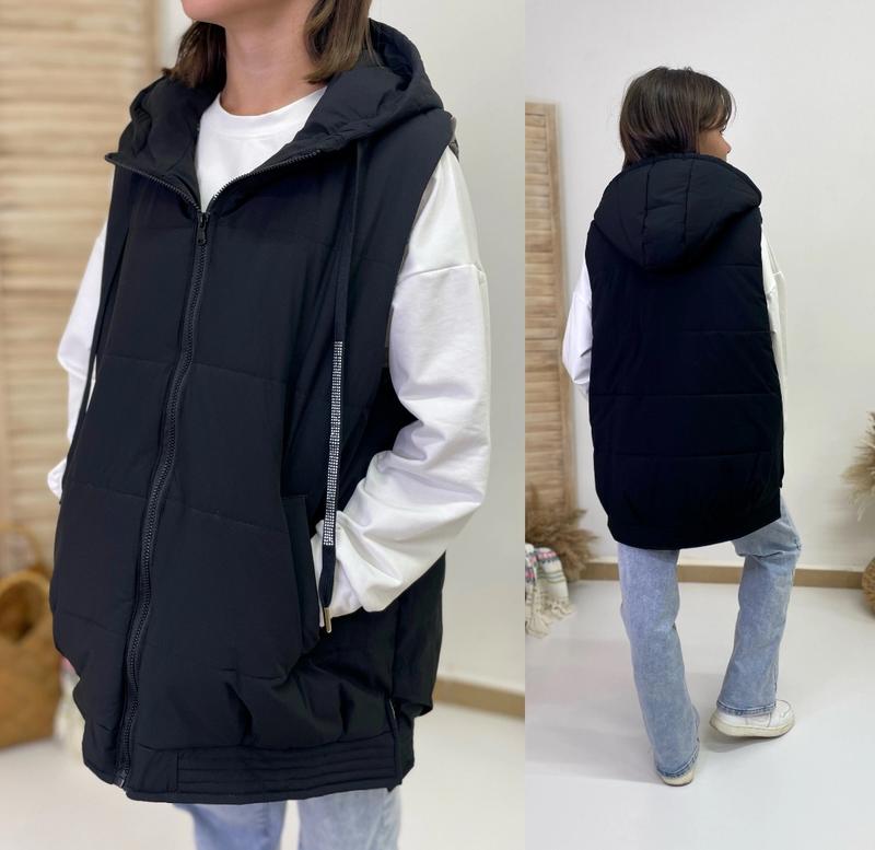 арт 5420 Новинка сезону! Жилетка с капюшоном OVERSIZE Из ткани плащевка ЕММІ это мягкая ткань с пропиткой Матовая поверхность На подкладке и синтепоне есть карманы Рекомендую! рост/длина/пог похибка+-2см 146/62/51-2шт 152/64/56-2шт 158/67/59-2шт 164/70/63-2шт Тан