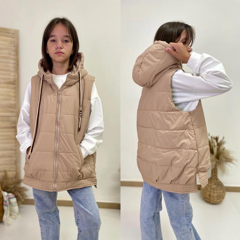 Новинка сезону! Жилетка с капюшоном OVERSIZE Из ткани плащевка ЕММІ это мягкая ткань с пропиткой Матовая поверхность На подкладке и синтепоне есть карманы Рекомендую! рост/длина/пог похибка+-2см 146/62/51 152/64/56