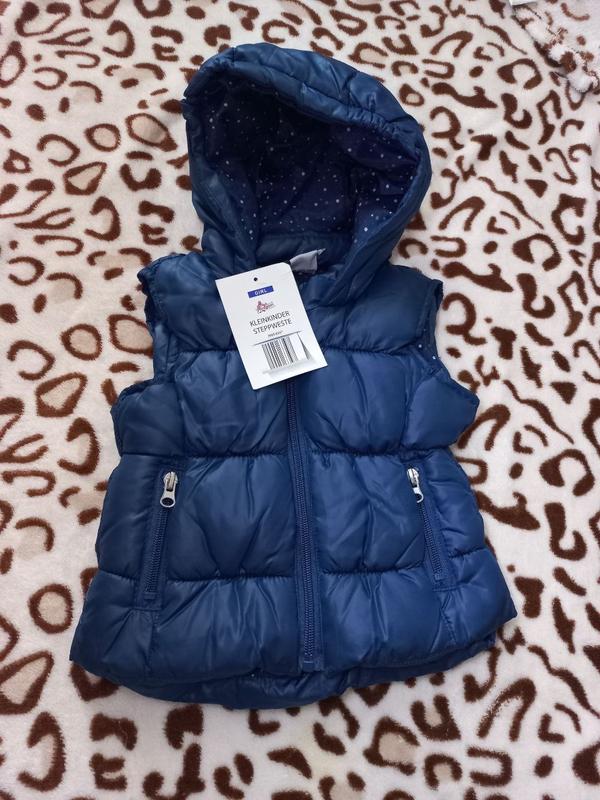 Дитяча жилетка Нова з бірками Розмір: 74/80 ( на 6-9 місяців ) В плечах: 24 см ПОГ: 30 см Довжина: 31 см