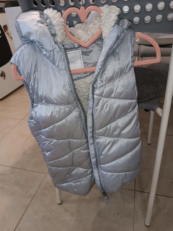 Жилетка с нюансом. Немного есть бутик сверху, надо расправлять и сзади порез небольшой. Загалом стан хороший. Очень теплая и стильная.