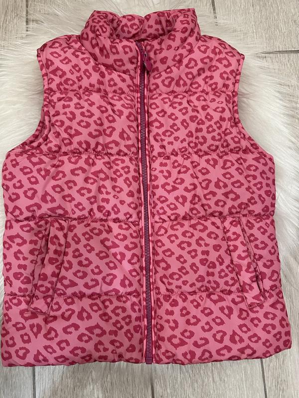 Жилетка утепленная для девочки, размер 122 см, яркий цвет и трендовый принт. Длина - 44см, ПОГ - 37см.