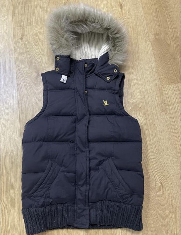 Жилет в красивом состоянии, теплый очень как куртка на синтепоне. Размер пишет 12-13 лет можно и на хс