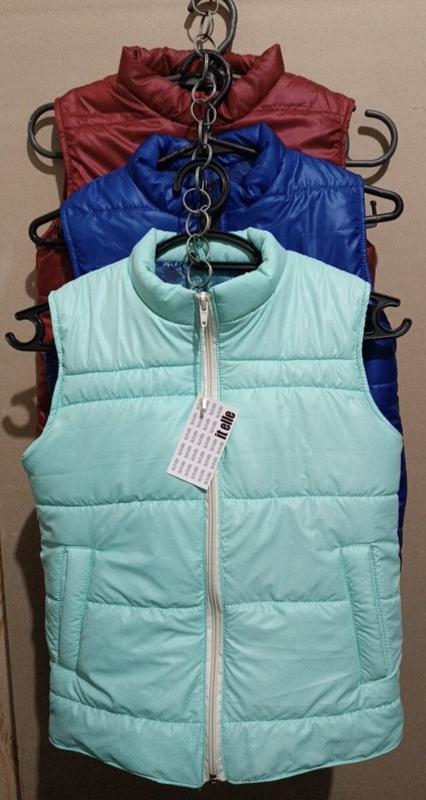Нові дитячі жилетки. Для хлопчіка і дівчінки. Розмір 36. Довжина 49см. По грудях 82см. Колір електрик,вишня, м'ята. Верх плащівка. Утеплювач синтепон силіконовий.Підклад саржа. З карманами, без капішона. Власне виробництво. Україна.