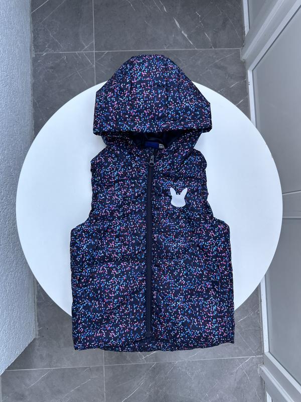 Классная темно синяя жилетка с яркими точками, капишон отстегивается