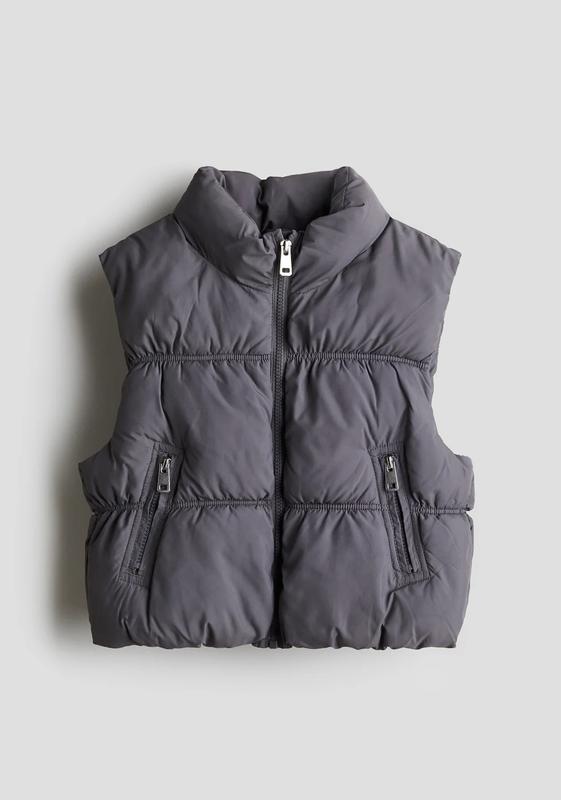 Короткий мягкий жилет из стеганой ткани. Воротник стойка, застежка на молнию, передние карманы на молнии. С подкладкой. Размеры в наличии 158-164, 170.