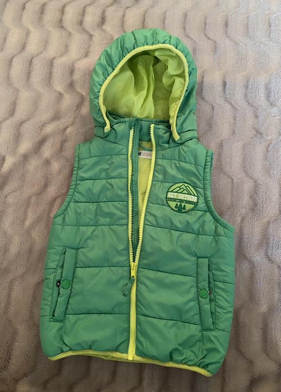 Жилетка дитяча в ідеальному стані. Утеплена. Капішон на липучках. Кишені на кнопках Довжина 40 см