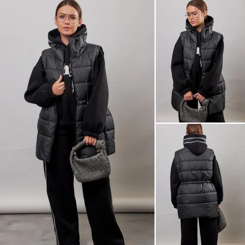 Подовжена жилетка В талии затягивается Воротничок-стойка КАЧЕСТВО ЧУДОВА!! РЕКОМЕНДУЮ!!! Полномерные 152,158,164,170 ▪️N-30