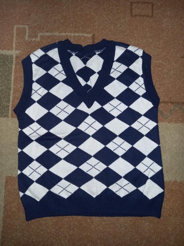 Теплая жилетка в ромб на 8-10 лет, рост 140-146 см