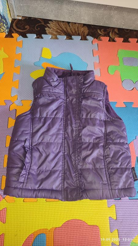 Жилетка детская, для девочки очень теплая без дефектов, есть карманчики, застегивается жилетка на замок и на заклепки