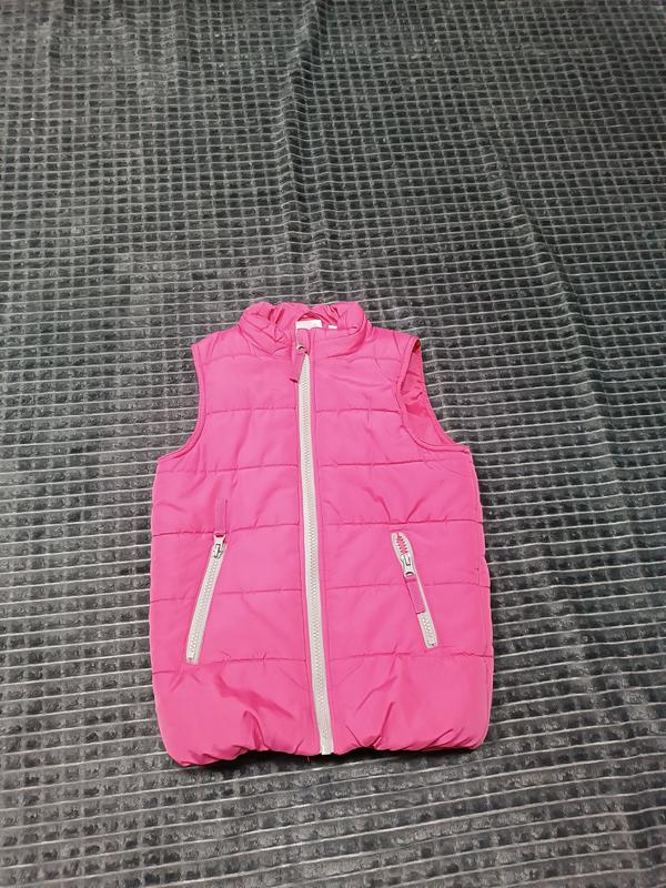 Великолепная тёпленькая желетка на девочку 110-116 рост, наполнитель синтепон состояние почти идеальное, бледное пятно у замочка - показала на фото замеры на фото