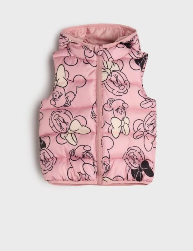Состояние новой, одети несколько раз, идеальный, без дефектов. 2-3 р. (92-98см) фирменный стеганый жилет Minnie Mouse Sinsay. Замеры: 2-3 года 92-98см груди п/о - 34 см. длина 38 см.