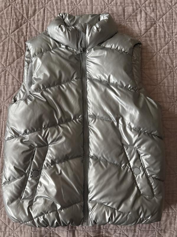 Зручна, стильна срібляста безрукавка для дівчинки lefties 9-10р (140 см). Б/в у відмінному стані. Стійка, дві кишені, застібка - блискавка. Довжина виробу - 48 см ПОГ - 42 см