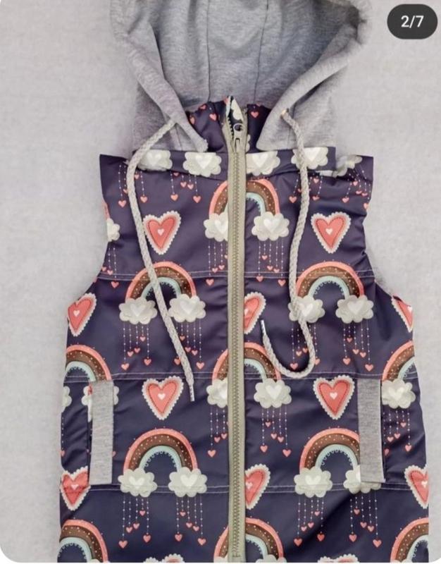 жилетка для девочки подкладка трикотаж не парит .Капюшон отстегиваеться.