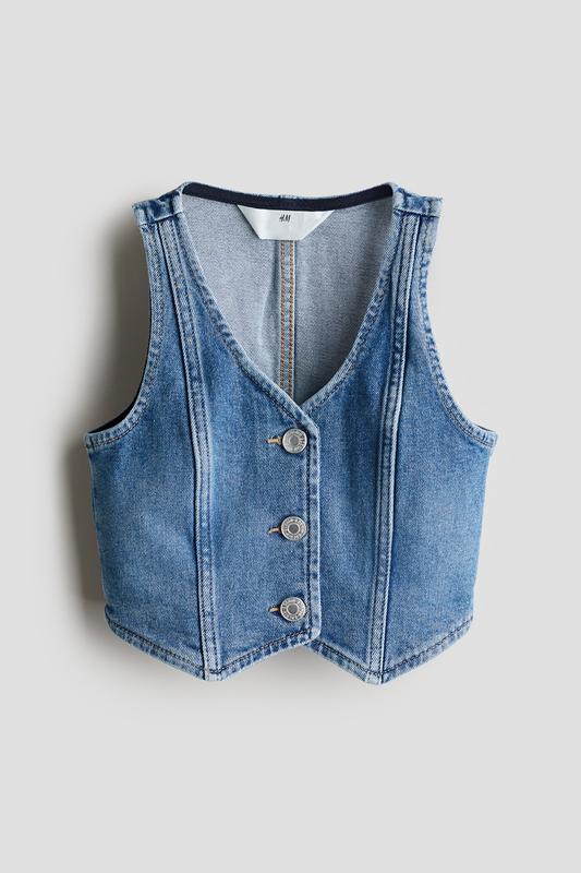 Джинсова жилетка від H&M Розмір 11-12 р на зріст 152 см По грудей 37 см Довжина 38-35 см 99% котон, 1% еластан