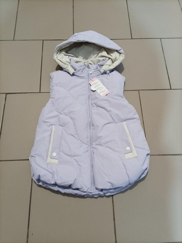 Нова якісна жилетка для дівчинки з капюшоном ,ніжно - бузкового кольору. Верх : плащівка ,всередині трикотажна підкладка та тонкий шар утеплювача. Спереду замок та дві кишені. Зріст 140 см(10 років). Зріст 146 см(11 років). Зріст 152 см(12 років). Зріст 158 см(13 років). Зріст 164 см(14 років). Заміри зроблю по ЗАПИТУ. Доставка : Нова пошта Укрпошта