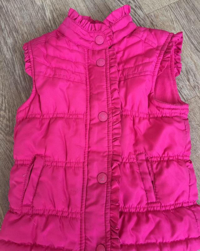 Очень красивая жилетка на хлопковой подкладке с утеплителем ( розовая) 92 размер. Состояние идеальное!
