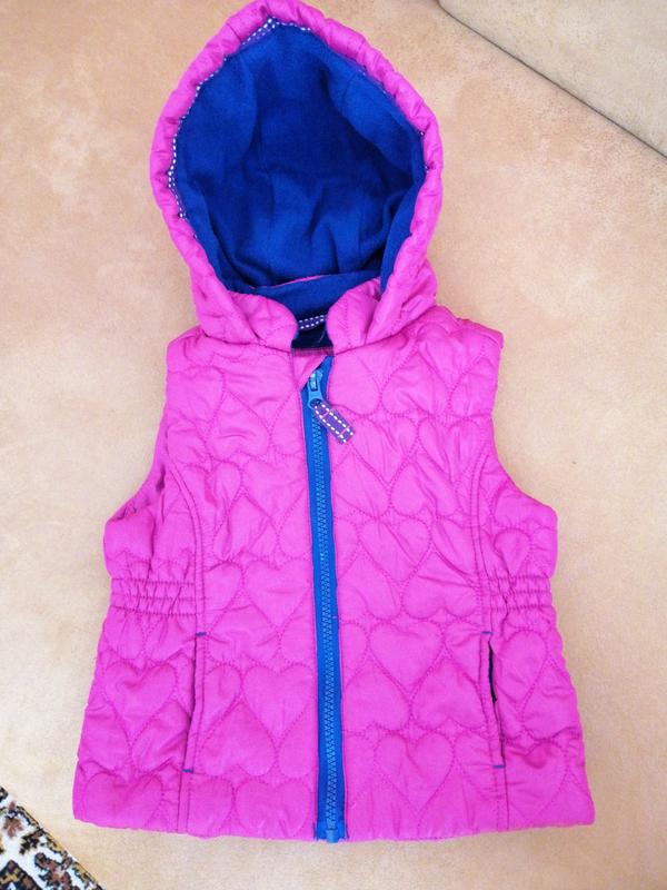 Шикарна жилеточка - кольором фуксії. Легенька на флісі - ідеальному стані. Заміри довжина - 33см ширина-31см.Підійде від 1,6до 2,6рочки