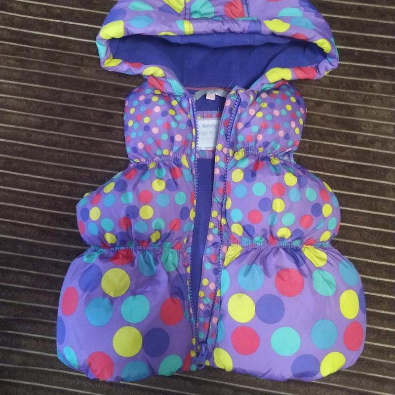 В ідеальному стані, носилася мало. Тепла дута жилетка, наповнювач синтепон Розмір по бірці 12-18 м Довжина 35 см Ширина під руками 30 см