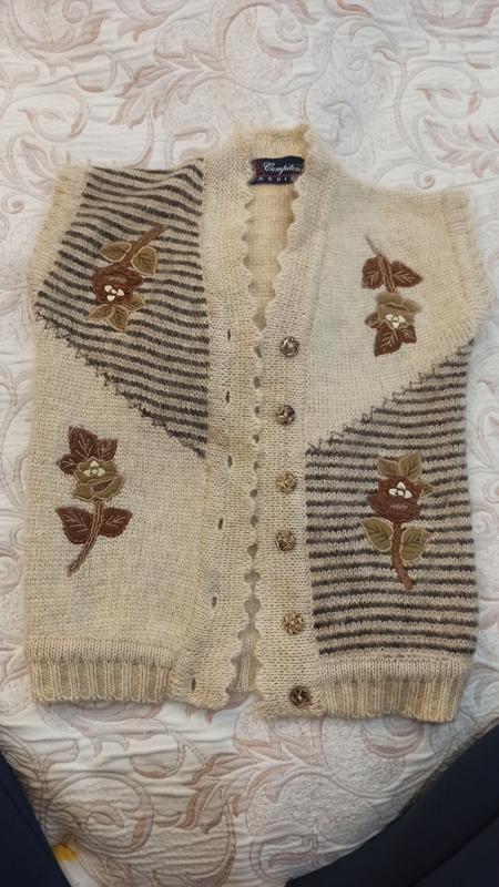 Тепла безрукавка на дівчинку. Довжина 49 см. Одягалась один раз,дефектів немає. Ширина у плечах 39см. За детальною інформацією звертайтесь буду рада допомогти.