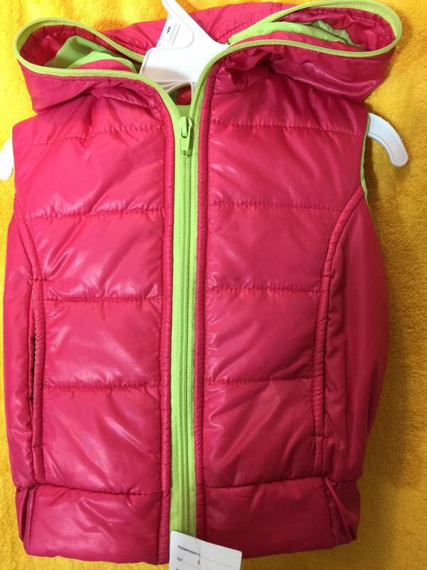 Жилет с капюшоном.. Утеплитель синтепон. Возраст 1-2 года. Размер /рост/ 86 ширина по груди 30см длина 33см