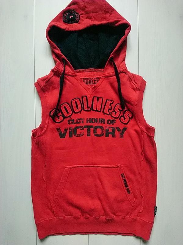 Безрукавка с капюшоном фирмы CoolCat в хорошем состоянии Материал котон Размер на рост 146-152 см Длинна от плеча 60 см В плечах 42 см Полуобхват груди 46 см