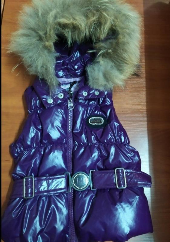 Жилет на 5 років. HEACH JUNIOR. Загальний стан п'ять з мінусом....Хутро прдевала моль з права і з ліва капюшона, не сильно... Але він відстібається разом з капюшоном.