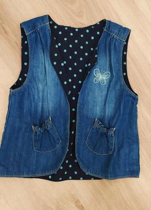 Красивая джинсовая жилетка . Состояние идеальное. Длина 44, под мишками 36 см.