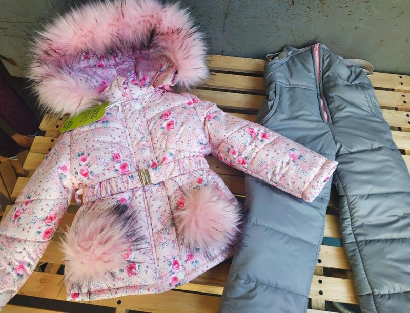 Комбинезон для девочек Сезон Зима Куртка верх плащевка водоотталкиваюшая Канада Наполнитель силиконизированый синтепон плотностью 250 Подкладка флис Плюс жилетка из овчины отстёгивается можно носить как отдельную часть гардероба Есть манжеты Опушка искусственная отстёгивается Полукомбинезон наполнитель силиконизированный синтепон плотностью 150 Подкладка флис Есть защита от снега Размер 92,98,104 Цена 1050грн